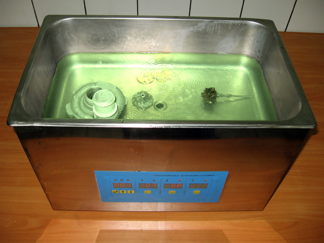 Myjka ultradźwiękowa czyści osady olejowe, naloty korozyjne i inne zanieczyszczenia z trudnodostępnych miejsc, których myjka parowa, nie jest w stanie usunąć. Kawitacja jest bardzo skuteczna, wszędzie tam gdzie metoda natryskowa nie wystarcza. Zastosowane w myjce generatory ultradźwiękowe emitują fale które uderzają w cząsteczki płynu wprawiając je w ruch. Specjalnie dobrane medium jest podgrzewane do 90 stopni C i ma zastosowane w rozdzielaczach hydraulicznych, komorach dystrybucyjnych, niedostępnych łożyskach, kamieniach dociskowych, zabezpieczeniach, a także w procesie regeneracji turbosprężarek którymi również się zajmujemy. Połączenie tych dwóch myjek, daje pewność, że wszystko jest na pewno dobrze wyczyszczone.
