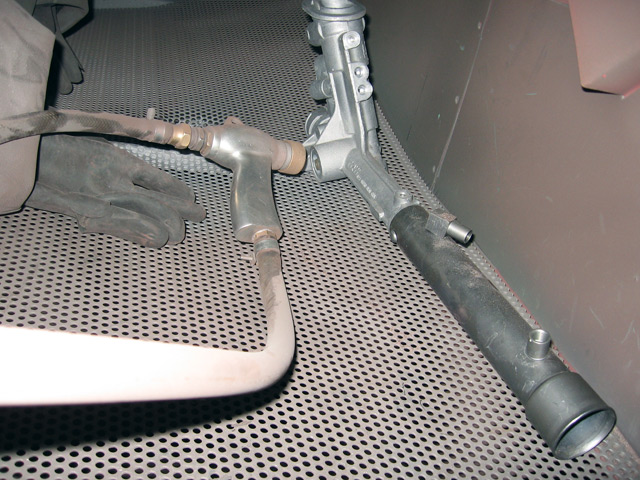 Piaskowanie ścierniwem lub szkiełkowanie szklanym grysikiem. Jest to metoda, którą wykorzystuje się przy czyszczeniu obudowy przekładni kierowniczej. Metalowe elementy są piaskowane ścierniwem, a odlewy duraluminiowe kulkami szklanymi. Metoda sprawia, że przekładnia wygląda jak nowa, i podczas lakierowania lepiej przyjmuje farbę. W niektórych konstrukcjach przekładni kierowniczych, piaskowanie lub szkiełkowanie jest niewskazane.